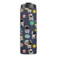 Um gráfico do astronauta clipart, Outer Space: astronauta segurando o balão como um planeta, um foguete, estrelas, ícone de OVNI, ícone de satélite espacial, planeta Saturno, nave espacial e outros. Sobre fundo azul de Oxford (azul marinho).