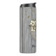 Uma coroa floral de hibisco de ouro elegante onde você pode personalizá-la em um pano de fundo de madeira de cinza rústica onde cai a depressão dourada criando vibrações quic house.