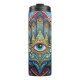 An artistic and detailed representation of the hand of Fatima, a powerful symbol of protection and good fortune, adorned with intricate designs and an all-seeing celestial eye.