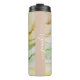 Personalize o nome do modelo. Bela abstrato em verde, amarelo, bege e pêssego. Arte original e única a tinta alcoólica da artista internacional Pauline Benjes. Disponível exclusivamente no Zazzle. Chamado de Tumbler Térmico de Pastel de Abstrato Rosa-Blush.