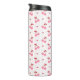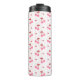 A seamless pattern featuring adorable pink cherries with playful hearts on a striped pastel background.