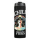 Mulher meditando gráfico com texto, "Chill Vibes" relaxante, sensação iluminada.