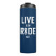 A melhor maneira de passar a vida é vivê-la devagar, mas andar de bicicleta rápido. Este design tem palavras simples e um elo de corrente de bicicleta.
