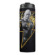Garrafa Térmica Cinza Adão Negro e Gráfico de Relâmpago Dourado