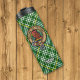 Crachá da crista de galo Clan Currie rodeado por uma correia e fivela sobre fundo tartano. Custom Text.