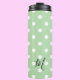 This pretty green polka dots pattern will brighten up any daily routine with a girly thermal tumbler. Use it for your morning coffee, water, or any drink you want to take with you on the go. Personalize the monogram in the listing editor to customize it.