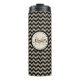 Este tumbler térmico tem um padrão de chevrons pretos contrastados com chevrons de ouro falso-prateado. No centro da frente está seu monograma em ouro, em um banner de círculo mais claro, alinhado em preto. Adicione o seu nome a preto sobre o monograma. Clássico! *Observe que a imagem está impressa e não contém nenhum brilho ou substância metálica real.*