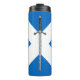 Esta design de Richard H. Fay combina uma ilustração da espada distintiva de duas mãos Highland conhecida como o claymore com o azul e branco da bandeira escocesa.