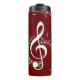 G Clef entre as notas de música em um vermelho profundo. O fundo vermelho escuro faz as notas brancas brilhantes pop. Design de música branca e marrom,