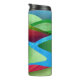 Uma paisagem abstrato com cores e texturas vibrantes mostrando colinas flutuando no gelo em tons de verde, azul, ciano, vermelho e rosa.
