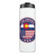 Crachá do Colorado com bandeira do Colorado e bandeira dos EUA cores, forma arredondada. Emblema do Colorado. Selo do Colorado. Coleção dos Estados Unidos.
