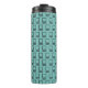 Essa garrafa térmica tem um design moderno século médio de quadrados com uma linha e uma linha de círculos, todos negros, se repetindo através do design num campo de mariscos. Se você gosta do design, mas prefere cores diferentes, me mande mensagem.