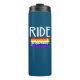 A felicidade na vida vem simplesmente, andar de bicicleta e andar de bicicleta com orgulho. Este design colorido tem listras arco-íris e texto grande.