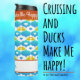 "Cruising and Ducks Make Me Happy!" quote—cute rubber duckie and heart patterned thermal tumbler. Cruise duck enthusiasts will love this! Create a custom water bottle with your name on it. Stay hydrated on your next cruise while duck hunting. Refill this insulated cup to take to the pool or beach. Perfect for a pre-vacation gift to get everyone excited in anticipation of the big trip.