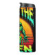 Uma ilustração impressionante apresenta dois aliens de pele verde, um grande e um pequeno, contra um pôr do sol vibrante laranja e listrado amarelo. O texto ousado e angustiado "BLAME THE ALIENÍGENA" é exibido com destaque, criando um gráfico temático extraterrestre humorístico e levemente acusatório.