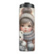 A festive thermo featuring an adorable girl in a cozy beanie with her polar teddy bear, perfect for holiday gifts.