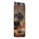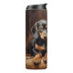 Tumbler Térmico - Retrato de dois filhotes de Dachshund pretos e bronzeados.