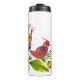 Artful thermal tumbler featuring a decorative bird with vibrant flowers and berries. Nature-inspired design in rich red, blue, and green tones adds charm to every sip. Perfect for coffee, tea, or any beverage on the go — a unique gift for art and nature lovers.