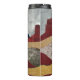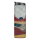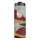 Uma paisagem abstrato com cores e texturas únicas mostrando uma cena do deserto com um sol azul ascensão e um cacto em tons de vermelho, cinza, bege e azul.