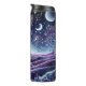 Esta ilustração encantadora mostra uma paisagem serena do deserto sob um céu noturno que respira. Os cactos de saguaro silenciados são colocados contra a rolagem de dunas roxas, iluminadas por uma luz brilhante e ascensão no horizonte. Acima, uma lua de cheio detalhada, lua crescente, inúmeras estrelas e constelações criam um panorama celeste mágico.
