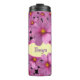 Garrafa Térmica Design de Flor do Cosmos Roxo em um Fundo Preto
