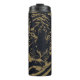 Esta moda de tigre de folha de ouro, de cor azul, desenhada à mão, em na moda, sobre fundo preto é a escolha perfeita para qualquer ocasião, visto diário ou decoração doméstica.