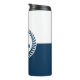 O design temático náutico com âncora e o louro envolvem a decoração sobre o fundo geométrico azul e branco