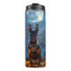 Libere o espírito assustador com esta design sombria do Dia das Bruxas apresentando um bando de cachorros sob um céu escuro e iluminado, cercado por morcegos voadores e abóboras brilhantes. Perfeito para aqueles que amam um toque de diversão terrível com seus amigos peludos!