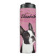 Um tumbler térmico cor-de-rosa e dourado com um fofo de Boston Terrier. Este canalha é perfeito para o amante de os animais da sua vida que ama o seu cão. Personalize o temporizador com qualquer nome. Ele apresenta um adorável Boston Terrier e é um presente perfeito para o amante do cachorro.