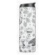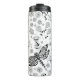 Dragonfly e várias flores e folhas. Padrão do vetor de porta em preto e branco.