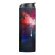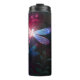 Luminosa, voadora, libélula vermelha, com asas transparentes e detalhadas sobre fundo escuro, noturno, luminoso com plantas tropicais e vagalumes. libélula vermelha.