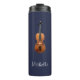 Monograma violino tumbler sobre fundo azul escuro. Com letras brancas, você pode personalizar com seu próprio texto. Um presente de excelente para você ou para o violinista na sua vida.