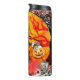 Esqueleto muito bonito e bem vestido em cima de uma assustadora abóbora Jack-o-Lanterna.