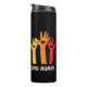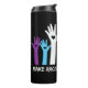 O design de antirracismo colorido apresenta um "arco-íris" de mãos com recortes cardíacos e texto branco "faça o racismo errado novamente".