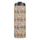 As matas do outono têm o mesmo tema que o "tumbler térmico", com folhas e bolotas sobre fundo de cinzas leves, apresenta raposa e texugo.