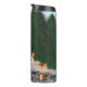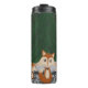 Apresentando a família Fox. Mamãe e seus dois bebês estão relaxando em uma pilha de rochas perto do rio.