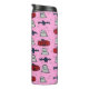 Impressão de Halloween bonito com morcegos, fantasmas, e jack ou lanternas em fundo rosa.