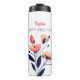 Garrafa Térmica Feliz Aniversário, Nome, Flores de Branco