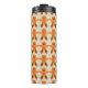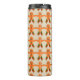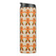 Este incrível tumbler térmico apresenta um desenho fofo de um homem colorido de gengibre. ele tem botões vermelhos e verdes, um sorriso grande em seu rosto e bruxas vermelhas e verdes em volta de suas pernas prontas para uma festa de Natal.