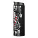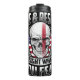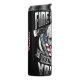 This is a powerful, graphic design for firefighters and rescue personnel. It features a stark skull overlaid on a faded American flag, with a bold thin red line stripe running down the center of the skull's face. Two crossed fire axes frame the central image. The text "FIRE & RESCUE" is at the top, and the defiant motto "I FIGHT WHAT YOU FEAR" is positioned at the bottom. The entire design uses a strong black and white color palette with the red accents.