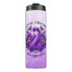 Sensibilização por Fibrose Cística. Tumbler com uma fita de consciência roxa CF, borboletas e flores para inspirar esperança.