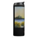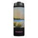 Two pink flamingos on an extended layover visit a deserted island. This tropical bird design comes from a watercolor collage by artist, Mary Hamilton. Enjoy their brief visit on this travel drinks container before they resume their flight.