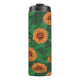 Garrafa Térmica Flores de Zinnia laranja, folhas verdes em verde e