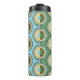 Garrafa Térmica Flores dobradas: padrão retroazul-verde.