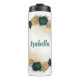 Belo tumbler térmico com flores esmeraldas verdes e douradas beges com folhas verdes. PARA MAIS PRODUTOS CORRESPONDENTES, clique na coleção acima ou entre em contato comigo