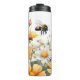 Garrafa Térmica Flores selvagens e Abelhas de mel Aquarela