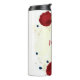 Tumbler térmico botânico com flores românticas vermelhas escuras e azuis escuros com folhas douradas.