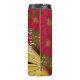 Garrafa Térmica Flores Vermelhas Lâmpadas Douradas Nome Personaliz