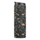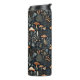 Esta design de baleia apresenta cogumelos atoleiros terracotta sobre um fundo azul-marinho escuro com bagas e fauna florestais.