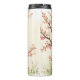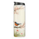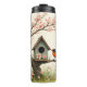 Um pássaro vermelho e preto se infiltra em uma pequena árvore diante de uma casa de pássaros rústicos neste bonitinho tumbler térmico do estilo popular. Perfeito para quem ama pássaros, a natureza e o exterior.